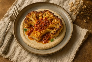 Chou-Fleur avec sa crème de haricots blancs et sa sauce espagnole