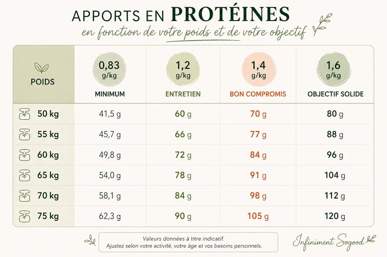Les besoins varient fortement selon votre âge, votre activité physique et vos objectifs.